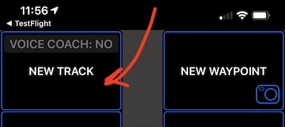 यदि यह आपका पहला ट्रैक नहीं है, तो ऐप इस स्थान पर ट्रैक अवधि और दूरी दिखाता है और आप मेनू बटन के माध्यम से नया ट्रैक शुरू करते हैं:
