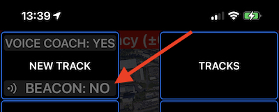 GPS बीकन केवल एक पूर्णतः वैकल्पिक कार्य है, उपयोगकर्ता को यह स्पष्ट रूप से दिखाया जाता है कि क्या वे GPS बीकन सक्षम किए बिना GPS ट्रैक शुरू कर रहे हैं (GPS बीकन डिफ़ॉल्ट रूप से बंद होता है)। नई ट्रैक बटन में: