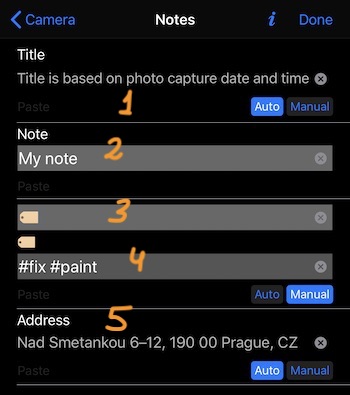다음 필드(3)는 사진 카테고리, 태그, 폴더 이름으로 사용할 이름입니다. 기본적으로 앱은 비어 있도록 유지합니다.