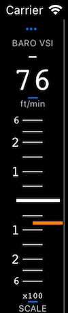 내장된 기압계(아이폰 6, 아이패드 에어 2 및 이후 모델에 존재)를 기반으로 수직 속도를 측정할 수 있습니다. 아이폰의 세로 방향에서는 그래프를 표시하여 값의 약간의 이력 정보를 제공합니다: