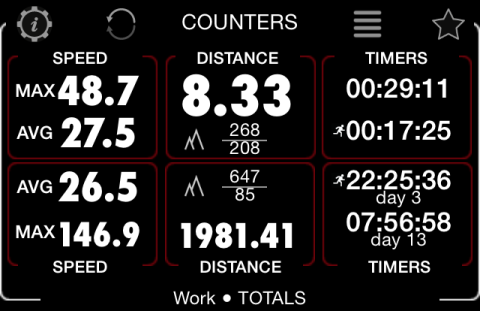 다음에 신호등에서 멈추거나 정체에 빠질 때 속도계가 여행 통계를 보여줍니다: