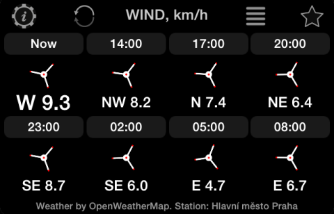 시간별 및 일별 풍속 예보(여기서는 시간별만 표시):
