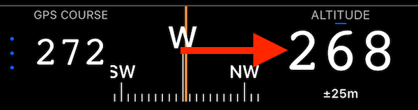 Pionowa dokładność GPS jest zawsze wyświetlana pod wartością wysokości.