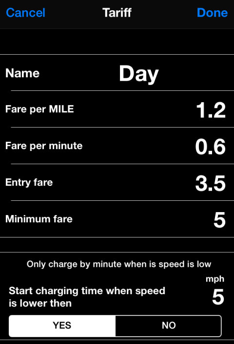 Wbudowany taxymetr zapewnia profesjonalny GPSowy taxymetr z możliwością dodawania wielu stawek, dodawania dodatkowych opłat podczas jazdy oraz ustawiania ceny za kilometr lub milę, albo nawet za czas. Dla stawek czasowych możesz naliczać opłatę ciągle lub tylko gdy prędkość jest niższa od określonego progu.