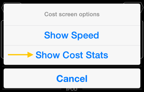 Wybierz “Pokaż statystyki kosztów” i wróć do ekranu kosztów/taxymetru: