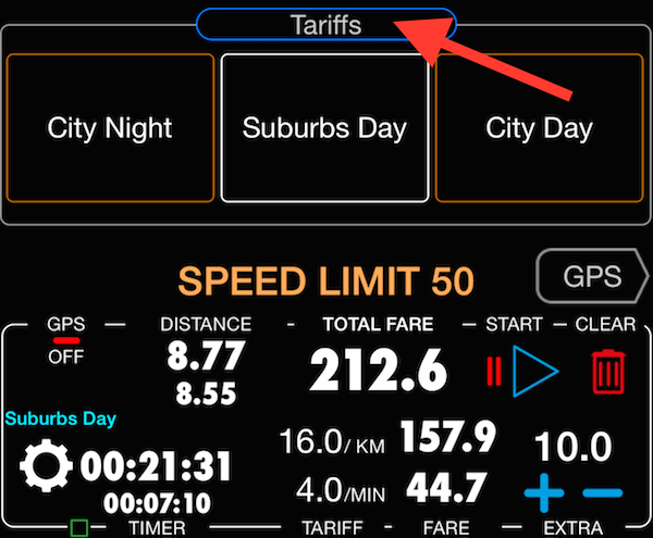 i wybierz “Taximeter tariffs switch”, aby móc przełączać się między stawkami jednym naciśnięciem:
