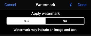 Ah, bekle! Söylenmeyi unuttuğum bir şey var… su damga resimlerinizi nereden ekleyebileceğinizi… Fotoğraf rolünden içe aktaracağınızı düşündüm, ancak çoğu zaman fotoğraf rolü şeffaflığı olan png resimleri şeffaf olmayan jpeg’lere dönüştürür. Bu yüzden iCloud, Dropbox vb. üzerinden resim yüklemenize izin vermeye karar verdim:
