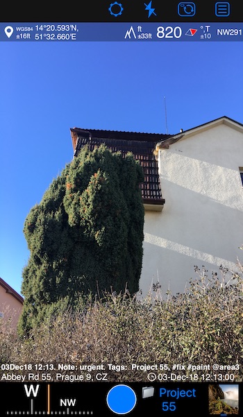 Bạn sẽ tìm thấy nút máy ảnh mới trong mục “New waypoint” (Tạo điểm dừng mới). Nút này mở màn hình máy ảnh cho phép bạn chụp ảnh với lớp phủ vị trí, ngày tháng và ghi chú: