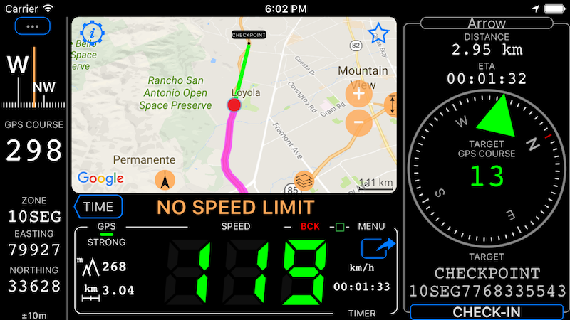Tất cả các chế độ: Chế độ mặc định ▪︎ Giám sát waypoint (ví dụ: camera tốc độ) ▪︎ Máy tính rally ▪︎ Thuế kế ▪︎ Bản đồ ▪︎ Hiển thị tốc độ Heads up ▪︎ Hiển thị tốc độ toàn màn hình ▪︎ Hiển thị bản đồ toàn màn hình ▪︎ Giám sát gia tốc G Force ▪︎ Chế độ định hướng trên đất ▪︎ Chế độ hẹn giờ và cảnh báo rảnh ▪︎ Chế độ thuyền thể thao nước ▪︎ Chế độ lướt ván buồm