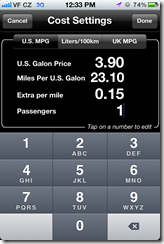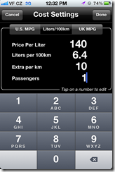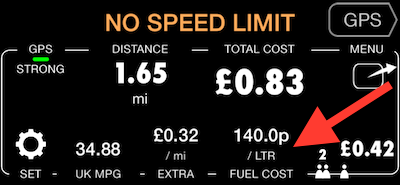 Bộ theo dõi chi phí cũng hỗ trợ MPG của Anh và lít trên 100km.