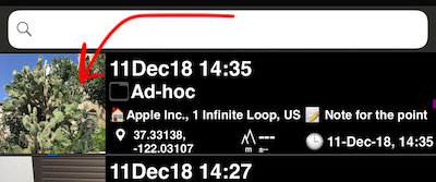 - 在航點列表中,您可透過點擊航點列中的影像開啟全螢幕預覽,無需開啟航點本身即可存取影像: