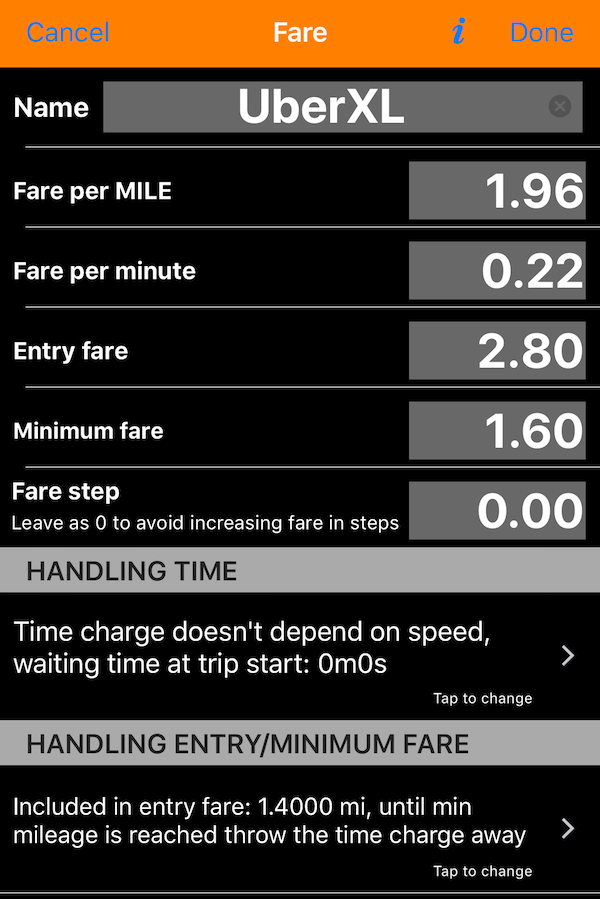 若你在 iPhone/iPad 上閱讀此頁面,只需 點擊此處訪問資料庫,並以一鍵將計費加入應用程式 。您可能需要調整計費金額,因為這些因國家/城鎮而異且會隨時間變化。資料庫的目標是描述不同的里程/時間處理情境,並使其能以一鍵安裝。