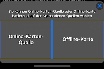 Sie fügen eine neue Karte hinzu, indem Sie auf einen Plus-Button tippen und aus den Optionen “Online-Kartenquelle” oder “Offline-Karte” auswählen: