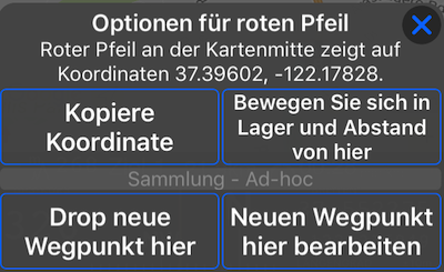 Wenn Sie die Karte “browse / edit” eingeben, wird der rote Pfeil in der Kartenmitte angezeigt und die Symbolleiste “roter Pfeil” auf der Karte unten gibt Ihnen die Lage einer Kartenmitte, Kartenrichtung und Entfernung vom aktuellen Standort zu einer Kartenmitte: