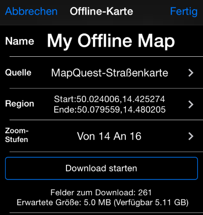 -- Karten können über WiFi heruntergeladen und dann verwendet werden, wenn das Internet nicht verfügbar ist. Tippen Sie auf ein Plus in den Karteneinstellungen, um das Hinzufügen von Karten zu starten.
