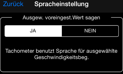 -- Das Tachometer kann Ihnen per Sprache bestätigen, welches die ausgewählte Geschwindigkeitsbegrenzung ist.
