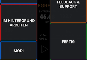 Ein verstärktes Drücken auf App-Symbole erlaubt das Starten oder Beenden einer Strecke sowie Umschalten zwischen Modi!