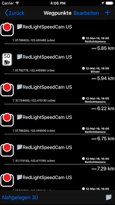 Alarmiert Sie bei Annäherung zu Wegpunkten (z.B. Radarkameras):