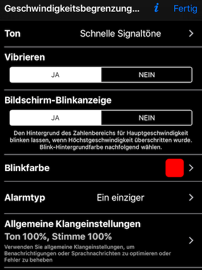 [](../../../en/speedometer/limitalert-settings/mute-button-main-screen.png?attredirects=0) Auf dem Bildschirm wird auch der Name des aktuellen Ausgabegeräts angezeigt und die Schaltfläche "Wiedergabe" zum Testen von Ton- und Sprachalarmen angezeigt. [Mehr zu allgemeinen Klangeinstellungen und zur Fehlersuche in Ihrem Auto.](../sound-settings) ### **💰** Neue Kosten / Kraftstoffoptionen (PRO) ### Bildschirm für Kosten und Kraftstoffeinstellungen wurde überarbeitet. Sie können es immer noch als Rechner zwischen US MPG, Liters und UK verwenden (ich kann nicht mehr UK MPG sagen, da es eine Mischung aus Meilen, Gallonen, Pence und Litern ist :)). Völlig neu in dieser Version sind: "Meilen pro Liter" und "Kilometer pro Liter" Kraftstoffeffizienzoptionen. Konfigurierbares Währungssymbol: