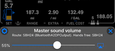 Wenn Sie jetzt auf eine Lautstärkeregelungstaste im integrierten iPod tippen, können Sie die Lautstärke wie gewohnt regeln und die aktuelle Lautstärke des Master-Sounds, die Routenbeschreibung (wo Musik / Sound geht) und das Sound-Routing ändern. Mit der linken oberen Einstellungsschaltfläche in diesem Menü wird ein detaillierter Klangeinstellungsbildschirm geöffnet, der Ihnen bei der Fehlersuche und der Bearbeitung JEDER Geräuschumgebung in Ihrem Auto oder Helm hilft.
