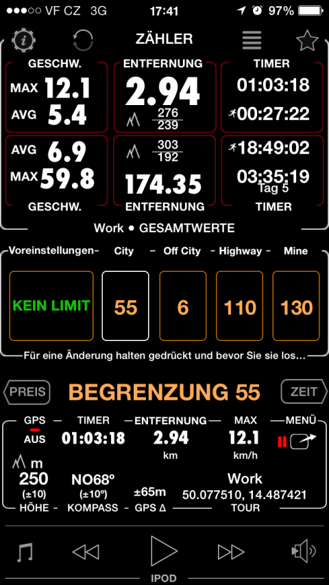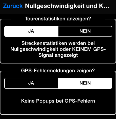 Tourendaten und Tourenstatistiken anzuzeigen, wenn die Geschwindigkeit Null beträgt oder kein GPS-Signal