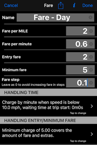 Special sections allow setup of how time and minimum or entry/base fare should be handled: