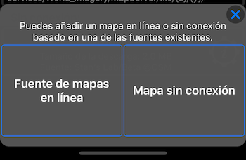 Para agregar un nuevo mapa, toca el botón “más” y elige entre las opciones “Fuente del mapa en línea” o “Mapa sin conexión”: