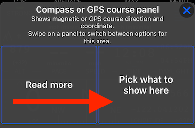 El panel de coordenadas de Compass + ahora puede cambiarse a brújula + altitud. Simplemente deslice el panel de la brújula inferior (o el lado izquierdo) para cambiar al panel de la brújula + altitud o use un botón de “3 puntos”: