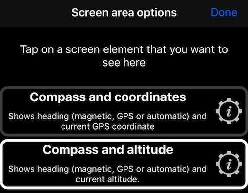 Brújula más el panel de altitud se mostrará en lugar de un panel de “brújula + coordenadas”.