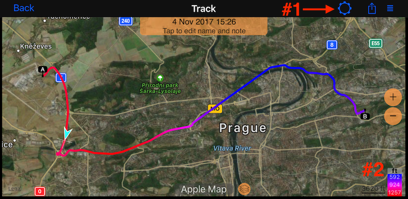 Como en todas las otras vistas, puede usar el botón n. ° 2 para colorear la pista por velocidad o altitud.
