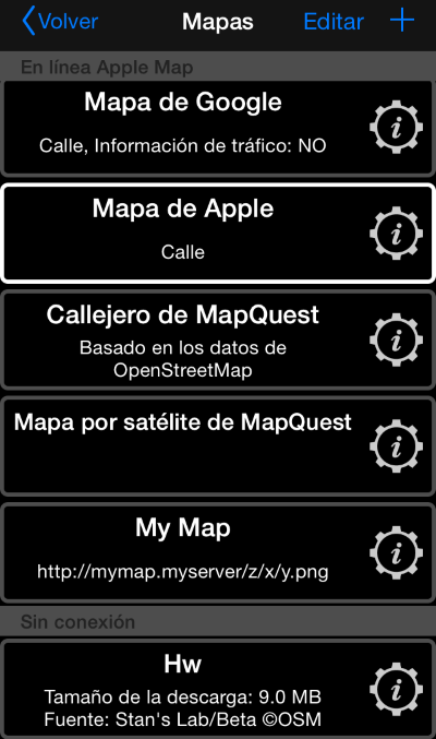-- Puedes descargar los mapas cuando tengas wifi y luego utilizarlos cuando no tengas internet. Pulsa en el Más en la configuración del mapa para empezar a añadir mapas.