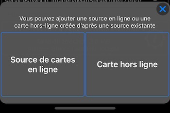 Vous ajoutez une nouvelle carte en appuyant sur un bouton «plus» et en choisissant parmi les options «Carte en ligne» ou «Carte hors connexion»: