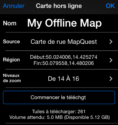 -- Vous pouvez télécharger des cartes lorsque vous êtes en connexion WiFi, puis les utiliser lorsque le réseau n’est pas disponible. Pour commencer à ajouter des cartes, toquez sur le signe « + » dans les paramètres de carte.