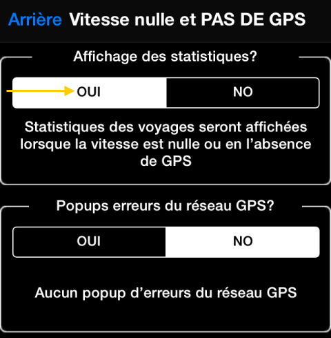 Docs Vitesse 55 Afficher les statistiques de voyage à la vitesse zéro Afficher les statistiques de voyage à la vitesse zéro “Paramètres avancés” > “Vitesse nulle et PAS DE GPS”: Lorsque la vitesse est nulle, vous verrez les statistiques de voyage au lieu de 000: