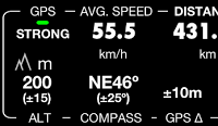 लाल रंग और OFF मान का अर्थ है कि स्थान सटीकता गति की गणना और प्रदर्शन के लिए पर्याप्त नहीं है। बाईं ओर की छवि वाईफाई आधारित स्थान निर्धारण के उदाहरण के रूप में सेवा करती है। इसकी विशेषता सटीकता लगभग 65 मीटर (200 फीट) है। जैसा कि हम देख सकते हैं, ऐसे मामले में ऊंचाई मान भी प्रदान किया जाता है।