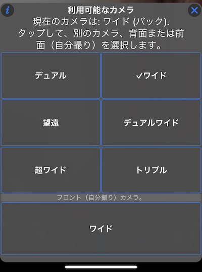 そして、現在のフォトセッションに最適なカメラデバイス/タイプを選択してください。iPhone 12 Pro Maxのピッカーメニューの例: