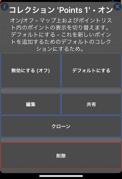 以前のバージョンでは、コレクションを有効または無効にしたポイントコレクション行をタップします。バージョン3.0以降、コレクション行をタップすると、このコレクションのオプションを含む新しいメニューが表示されます。