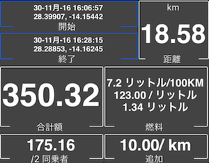 トラックに費用情報がない場合(トラックの作成時に入力されていないか、トラックがインポートされている可能性があります)、アプリは設定した現在の費用情報を使用します。