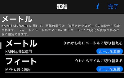 単位はフィート/分、メートル/分、メートル/秒です。 設定するユニットラベルの上をタップします。