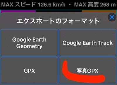 “Photo GPX"トラックエクスポートオプション(PRO)