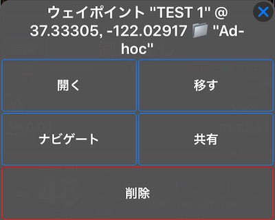 地図検索/ブラウズモードでは、ウェイポイントをタップして新しいオプションを表示します: 移動: