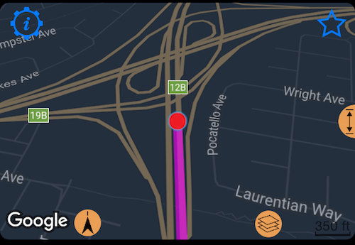 FREE 버전 사용자는 구글 맵에 대한 나이트 모드를 자동으로 적용할 수 있는 옵션이 있습니다. 안전이 최우선입니다! 앱이 업그레이드를 제안하지 않아도 해당 설정 화면에 접근하려면 맵 상의 “레이어” 버튼을 사용하고 여기서 구글 맵 설정으로 이동하세요, 하단 옵션입니다.