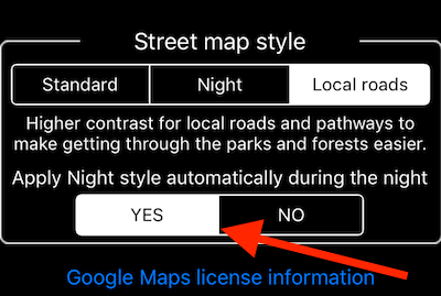 1.8 버전부터 구글 맵에 나이트 스타일을 적용할 수 있습니다. 애플 맵은 항상 이를 지원했으며, 사용자와 개발자로서 정확히 언제 적용되는지에 대한 제어 권한이 없습니다.