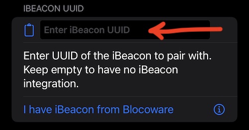 iBeacon 텍스트 필드 왼쪽의 “클립보드” 버튼을 사용하여 iBeacon UUID를 붙여넣으세요.