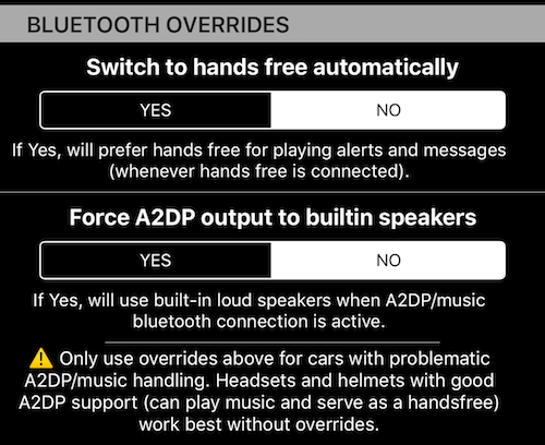두 번째 옵션인 **“A2DP 출력을 내장 스피커로 강제”**는 A2DP 채널이 연결될 때 앱의 알림 및 음성이 iPhone/iPad의 내장 스피커로 라우팅되도록 보장합니다. 왜 이 옵션을 사용해야 할까요? 일부 차량 인포테인먼트 시스템은 고품질 오디오/음악 스트리밍 채널을 제공한다고 iPhone에 알리지만 실제로는 음량을 끄는 경우가 있습니다. 왜 그럴까요? 고객이 업그레이드를 위해 돈을 지불하도록 하기 위한 것이라고 생각됩니다. 적어도 Audi 포럼을 통해 읽어본 바에 의하면 그렇습니다. 이 옵션을 켜면 앱이 iPhone의 내장 스피커를 통해 알림/음성을 라우팅할 수 있습니다.