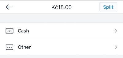 당신에게 적용되는 텐더 타입을 선택하세요. 여기서 텐더 타입을 선택하면 택시계에서 Square 앱으로 전환할 때 해당 옵션도 사용할 수 있게 됩니다. 아래 예시에서 Cash + 기타가 설정되어 있으면, Square 앱은 택시계가 결제를 위해 열릴 때 다음과 같은 텐더 옵션을 제공합니다: