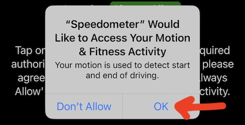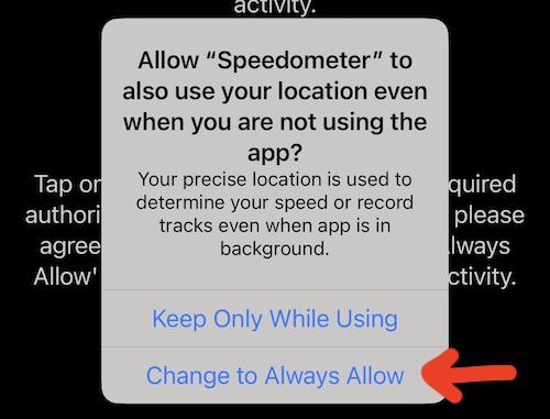 Domyślnie, przy pierwszym uruchomieniu, aplikacja prosi o uprawnienia lokalizacji “Podczas korzystania z aplikacji” i to wszystko. Aby móc zaczynać i zatrzymywać trasy automatycznie, aplikacja musi mieć dostęp do lokalizacji “Zawsze” oraz dostęp do “Ruchu”.