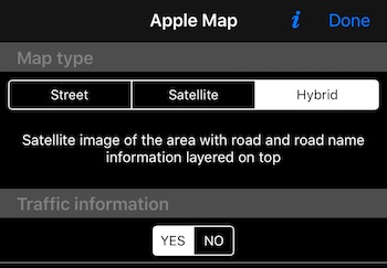 Możesz wybrać typ mapy tutaj z opcji: Ulica, Satelita i Hybryda (Satelita z nakładką nazw ulic).