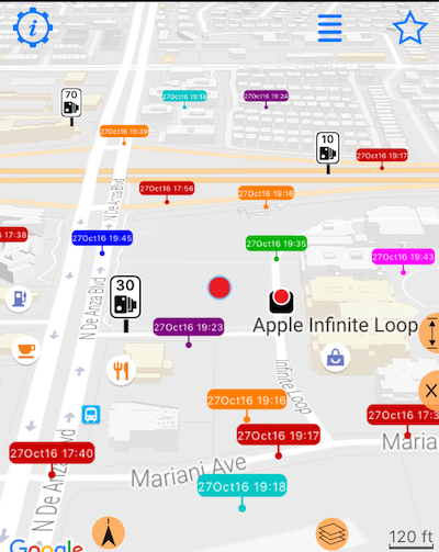 Prędkościomierz. Kolor punktów trasy.