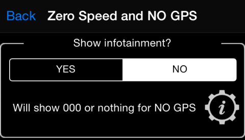You don’t have to look at zero speed when waiting on traffic lights or in a jam anymore! Weatherinformation, trip stats and twitter timeline information can be shown. Enablevia “Advanced settings” > “Zero speed and NO GPS” > “Showinfotainment”: